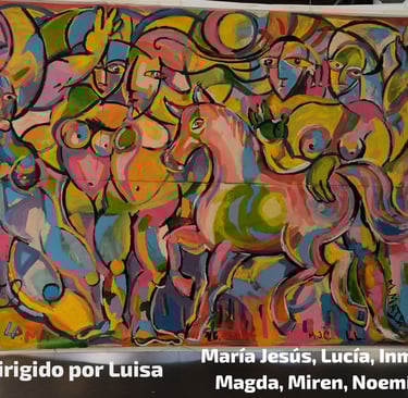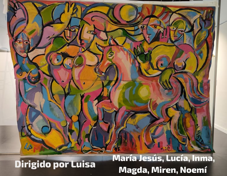 Este es el mural que salió de la actividad colaborativa de varias mujeres artistas de la asociación pintando en directo.